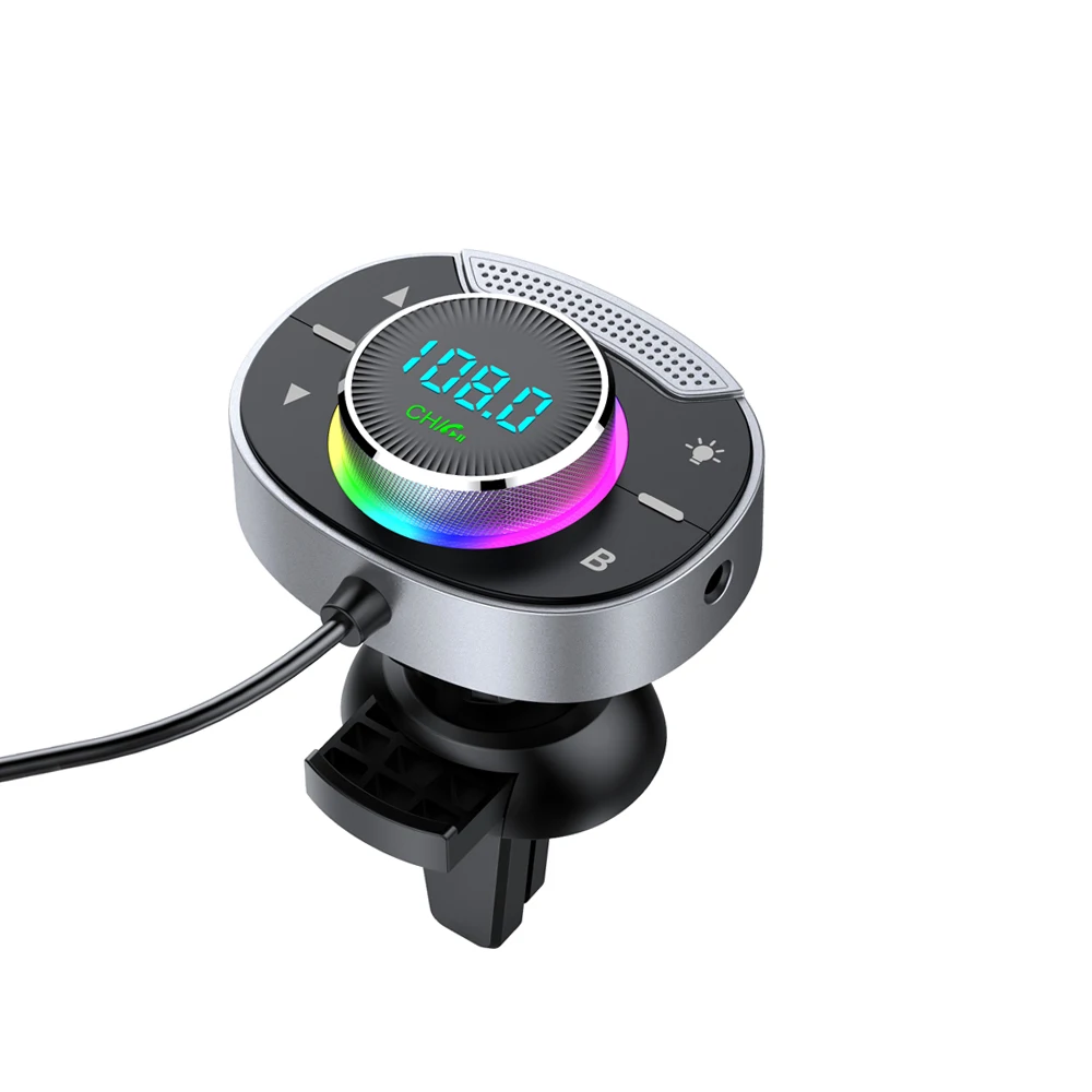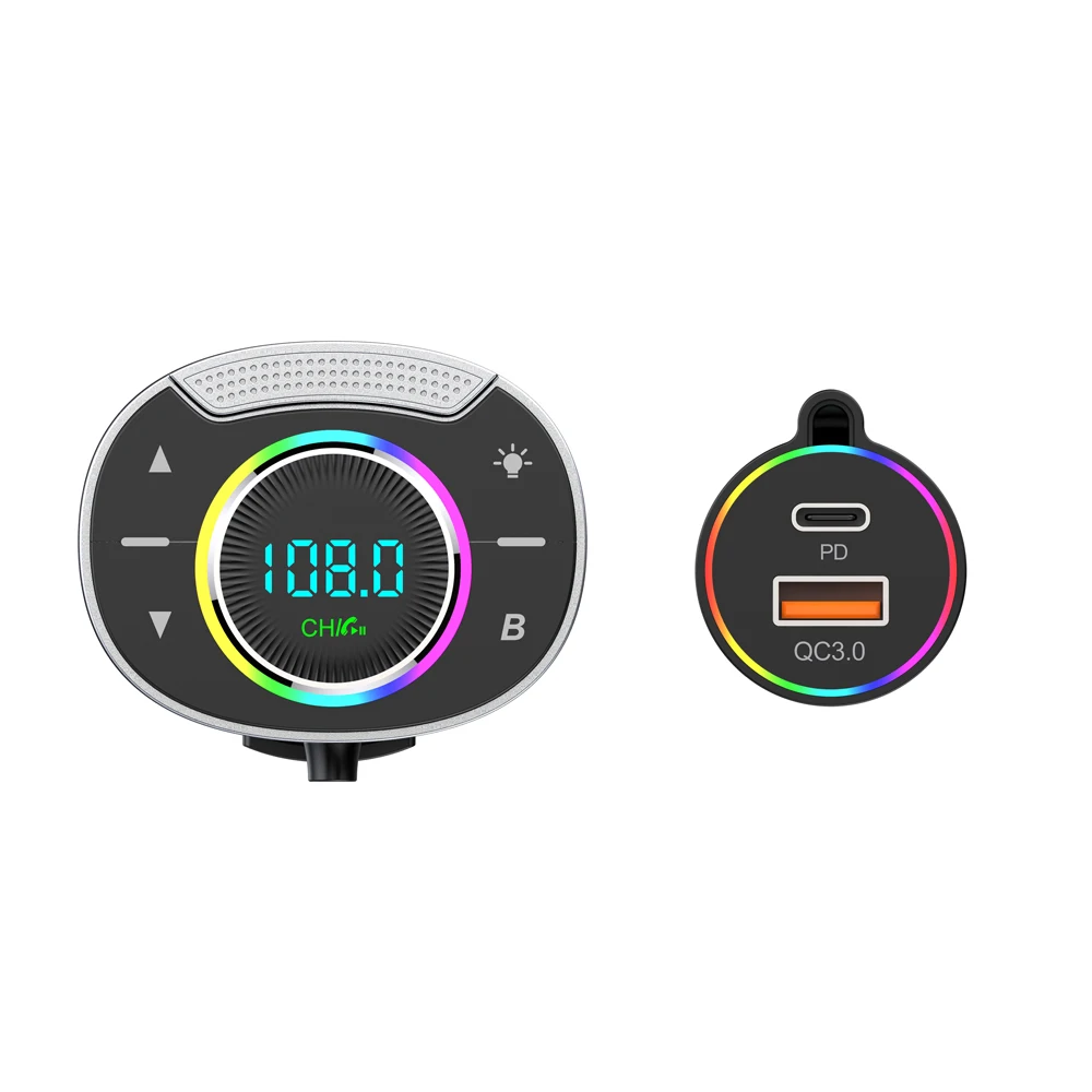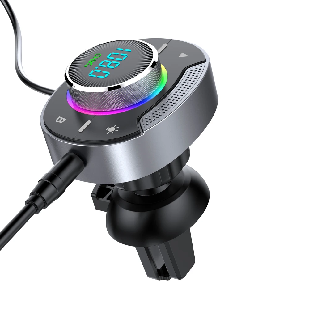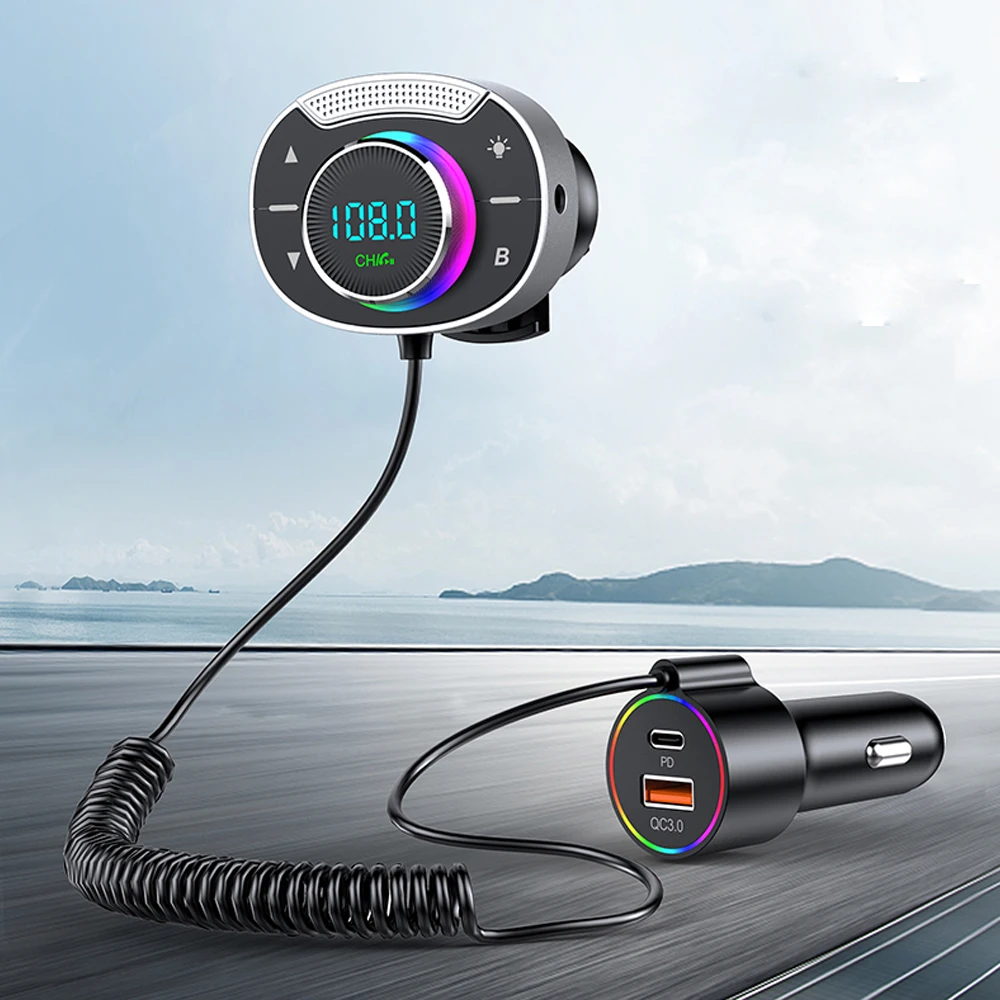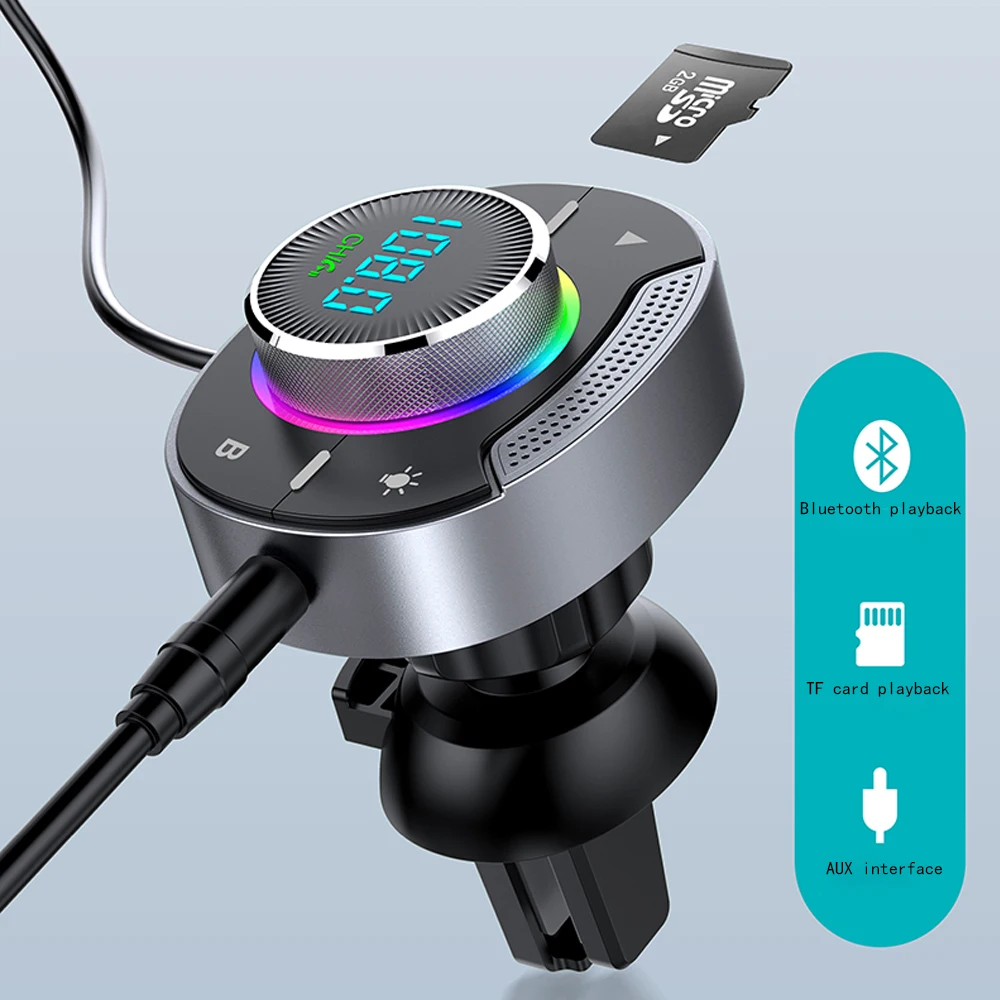 LED Car Bluetooth 5.3 FM Car Transmitter 3.5mm AUX Adapter MP3 Player PD30W QC18W Fast Charger Hands-Free Calls Car Accessories