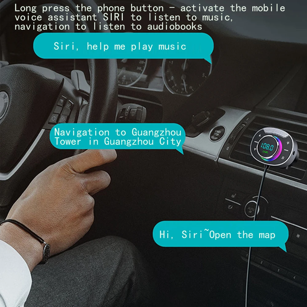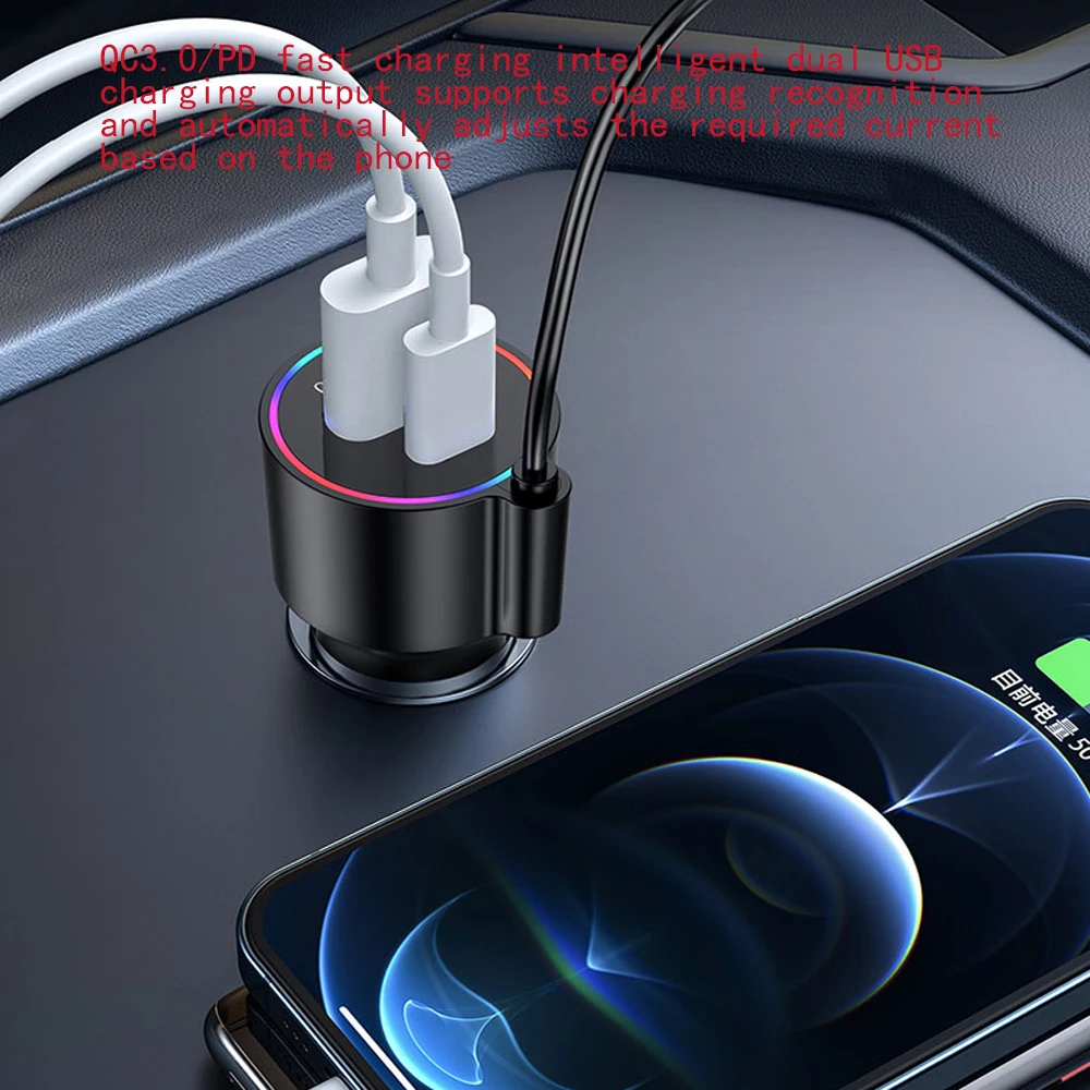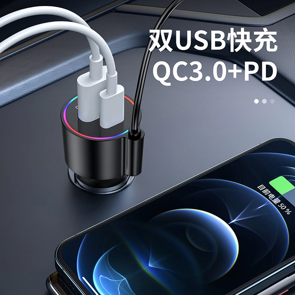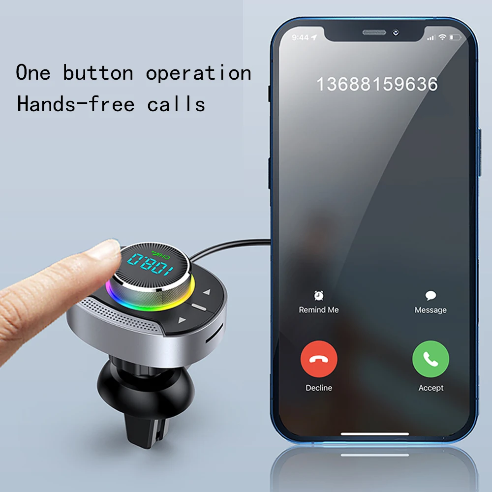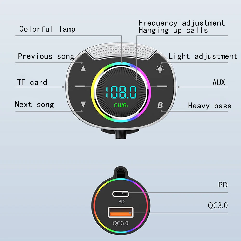 LED Car Bluetooth 5.3 FM Car Transmitter 3.5mm AUX Adapter MP3 Player PD30W QC18W Fast Charger Hands-Free Calls Car Accessories